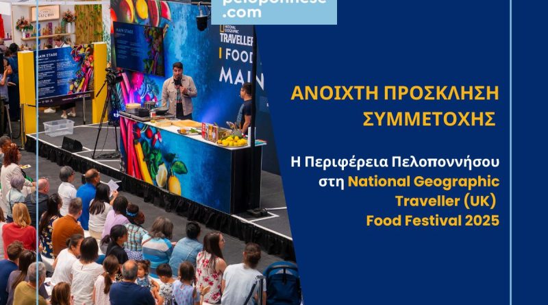 Η Περιφέρεια Πελοποννήσου συμμετέχει στο National Geographic Traveller Food Festival 2025, μία από τις κορυφαίες διεθνείς διοργανώσεις που συνδέουν τον τουρισμό με τη γαστρονομία, η οποία θα πραγματοποιηθεί στο Λονδίνο στις 19 και 20 Ιουλίου 2025. Με περισσότερους από 40.000 επισκέπτες ετησίως, το φεστιβάλ αποτελεί ιδανική πλατφόρμα προβολής προορισμών με ισχυρή τοπική ταυτότητα και γαστρονομική παράδοση.