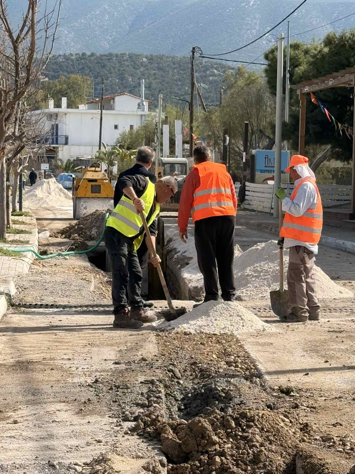 «Σήμερα (σ.σ. χτες) βρεθήκαμε στη Δημοτική Ενότητα Σαρωνικού για αυτοψία σε ένα από τα σημαντικότερα έργα υποδομής που εξελίσσονται στον Δήμο μας. Μαζί με τον Γενικό Γραμματέα Συντονισμού Διαχείρισης Αποβλήτων, Μανώλη Γραφάκο, είχαμε την ευκαιρία να δούμε από κοντά την πρόοδο του νέου αποχετευτικού δικτύου στα Λουτρά Ωραίας Ελένης, το Γαλατάκι και την Αλμυρή και της σύνδεσής του με τον Βιολογικό των Αγίων Θεοδώρων.