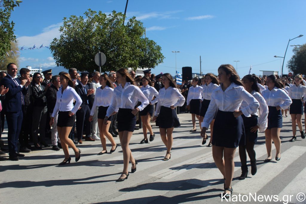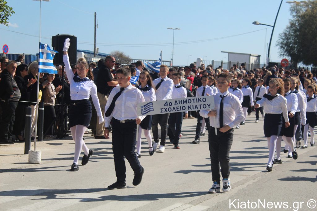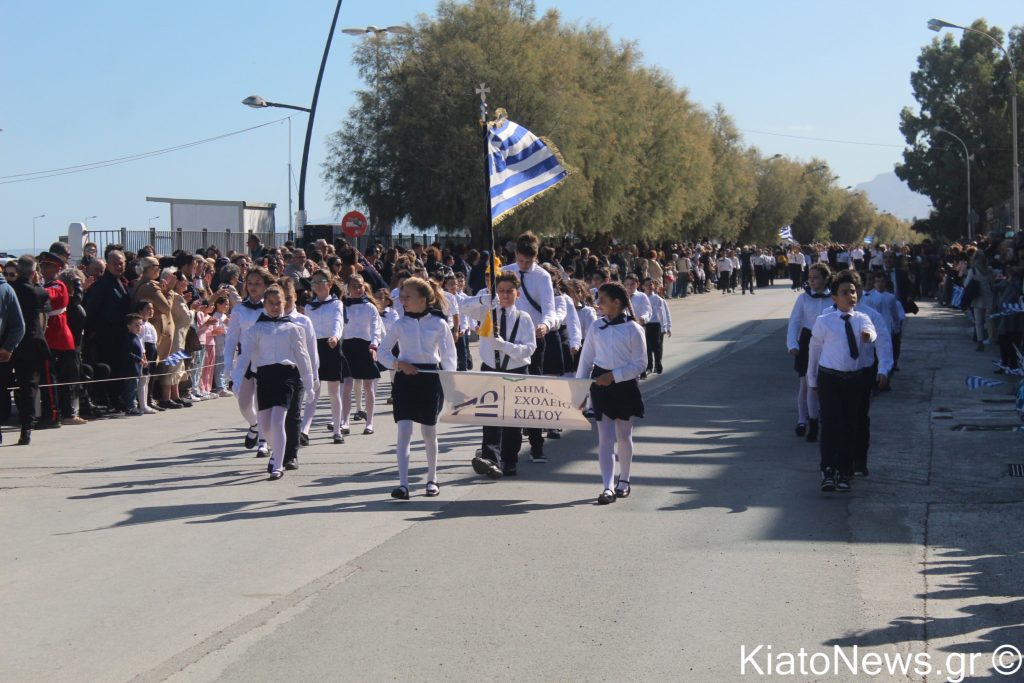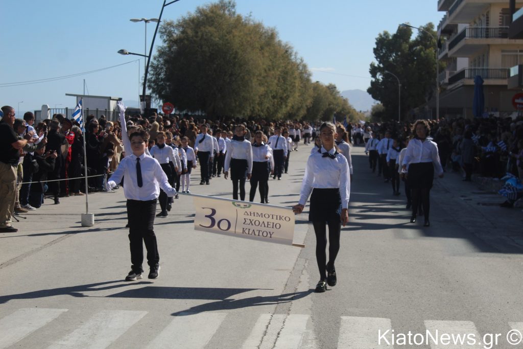 Με λαμπρότητα και σύμμαχο τον καθαρό καιρό πραγματοποιήθηκε ο εορτασμός της 28ης Οκτωβρίου στο Κιάτο. Μετά την πρωινή δοξολογία, έγινε κατάθεση στεφάνων από εκπροσώπους της δημοτικής αρχής, των σωμάτων ασφαλείας, συλλόγων και εκπροσώπων πολιτικών παρατάξεων, τηρήθηκε ενός λεπτού σιγή και μετά ψάλθηκε ο εθνικός μας ύμνος υπό τους ήχους της Δημοτικής Φιλαρμονικής Σικυωνίων. Έπειτα ακολούθησε η καθιερωμένη μαθητική παρέλαση.