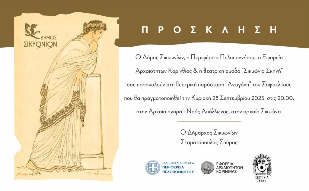 Την Κυριακή 28 Σεπτεμβρίου στον αρχαιολογικό χώρο της Αρχαίας Σικυώνας ανεβαίνει η παράσταση “Αντιγόνη” του Σοφοκλή