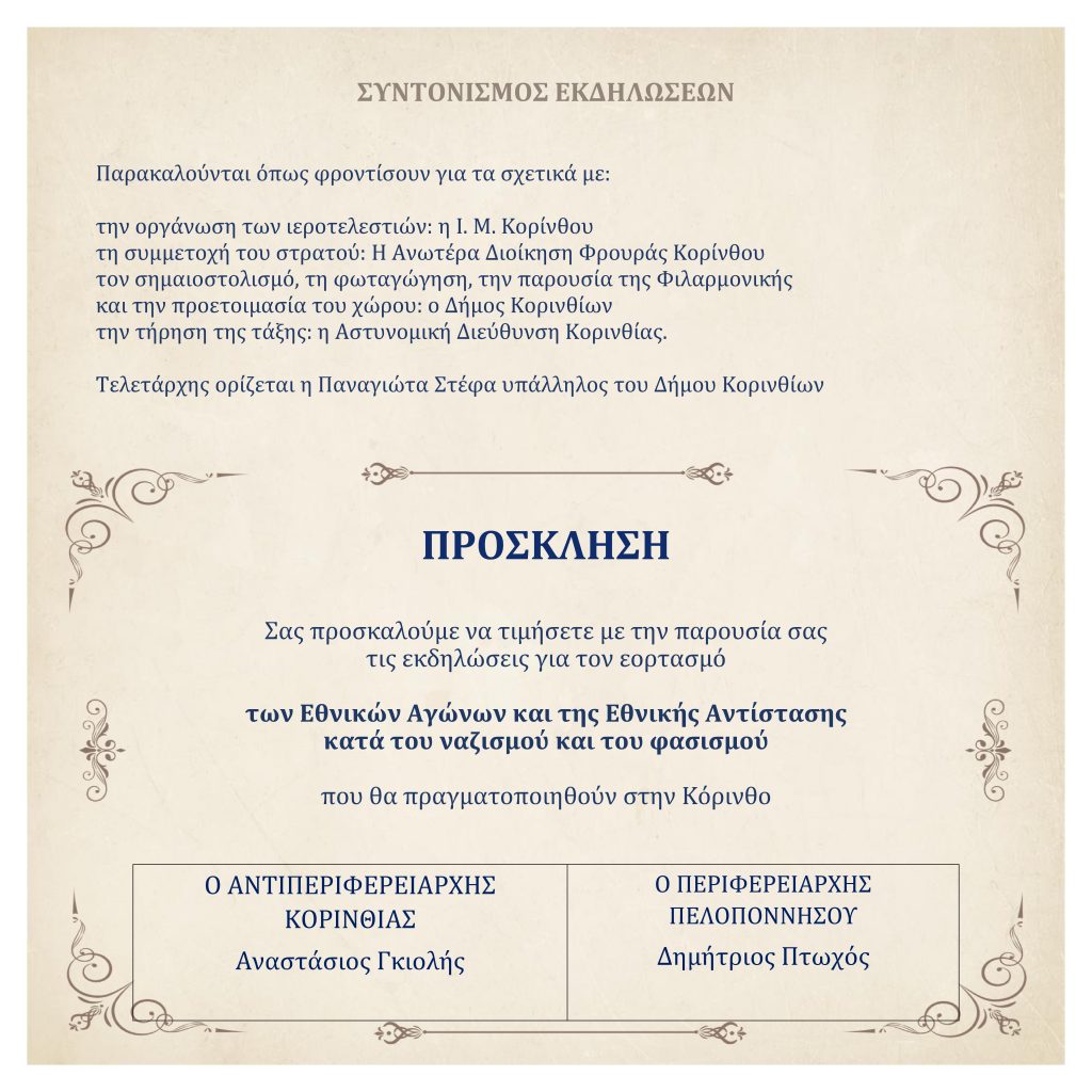 Η Περιφέρεια Πελοποννήσου καλεί όλους τους πολίτες να συμμετάσχουν στις εκδηλώσεις, τιμώντας όσους αντιστάθηκαν με γενναιότητα στη βαρβαρότητα και υπερασπίστηκαν την ελευθερία και τη δημοκρατία.